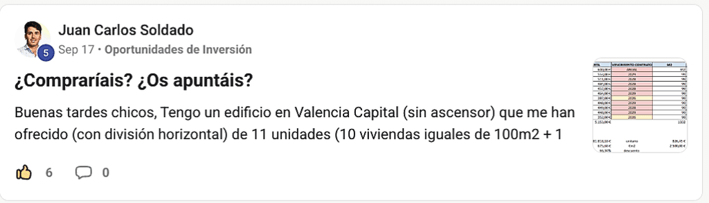 Accede a una comunidad de inversores que comparten conocimiento, analizan oportunidades y multiplican sus patrimonios juntos.