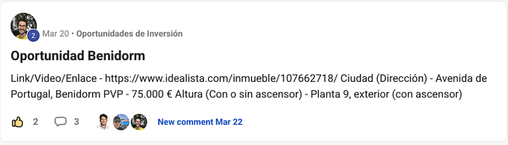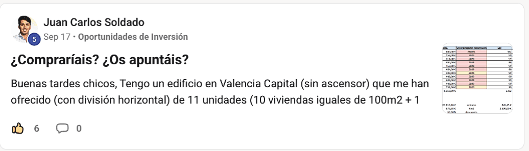 Accede a una comunidad de inversores que comparten conocimiento, analizan oportunidades y multiplican sus patrimonios juntos.